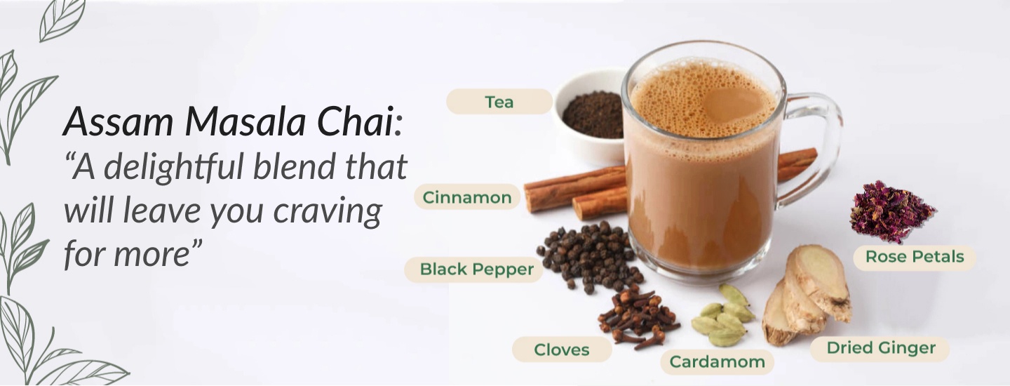 Ingredients: Tea, Cardamom, Dried Ginger, Cloves, Black Pepper, Cinnamom & Rose Petals.